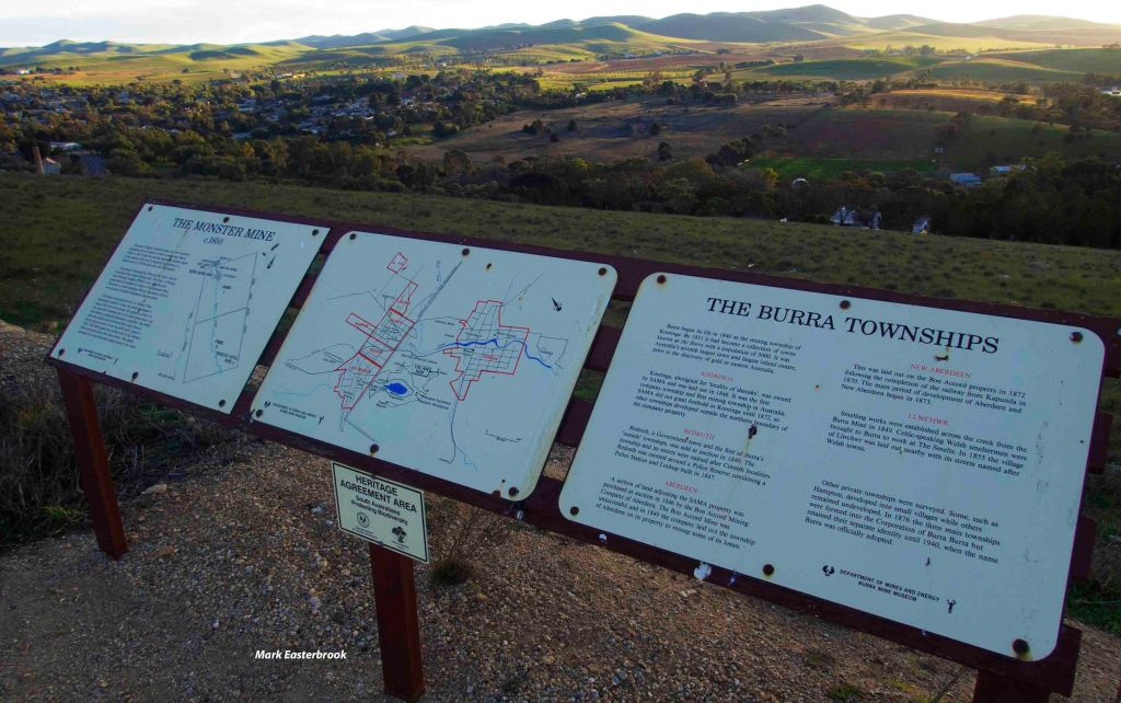 At the mine site we had a good view over ‘the Burra’, the collective name for neighbouring townships. Former mining company towns, the areas of Kooringa, Aberdeen, Redruth, Hampton, and Llwchwr, merged to called Burra.