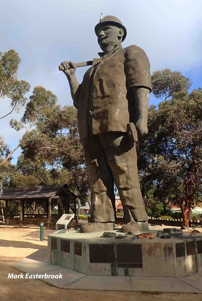 We stopped off at Map Kurnow in Kapunda. A large statue to the Cornish miners that travelled this route from Adelaide to Burra between 1845 and 1877, chasing work and copper.