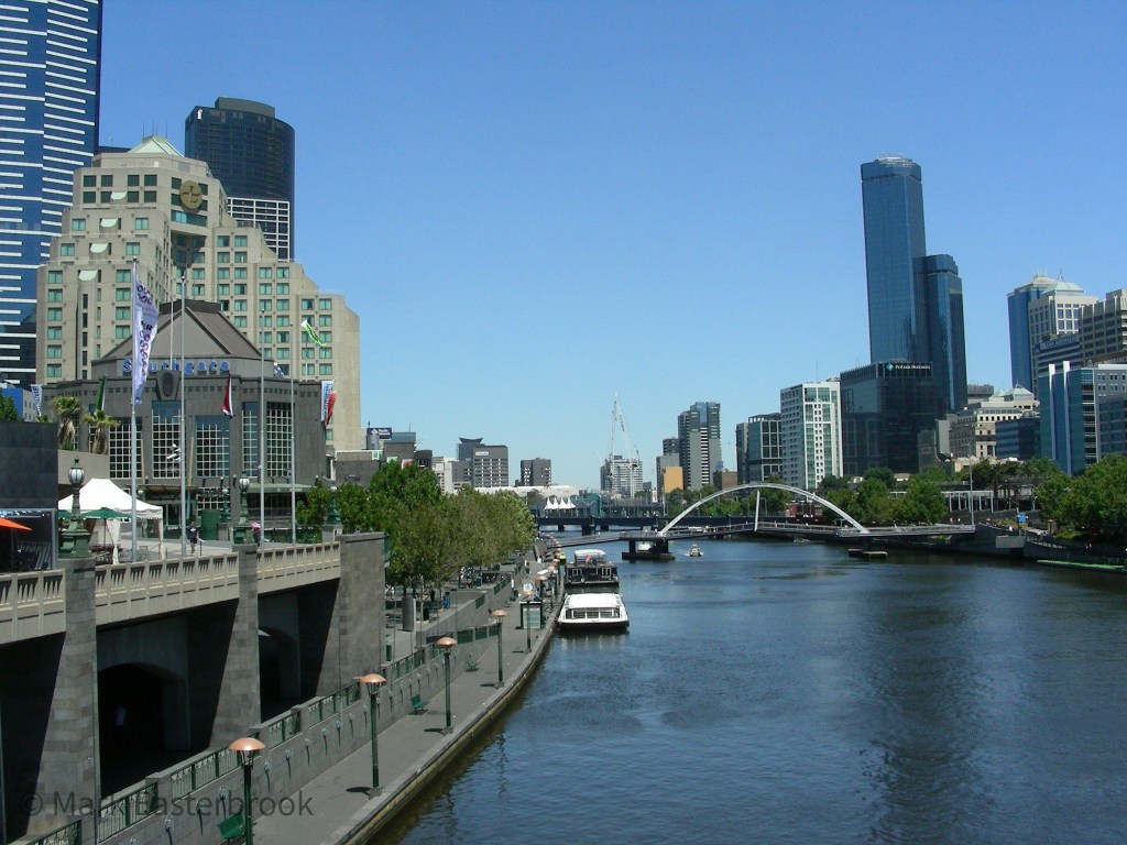 A favourite view, looking down the Yarra River from Princess Street bridge Setting sail for TasmaniaA trip on the Puffing BillyRevamping of the Docklands opened up a new part of the cityA skiing weekend with Lee on Nagambi LakesWaterskiing on NagambiMy first sighting of an A380 in the flesh, Melbourne Airport 2010